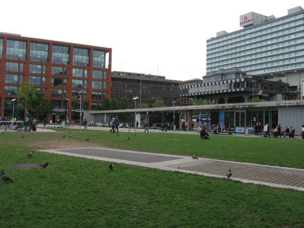 Piccadilly Gardens is an area in the centre of Manchester city centre with an area of grass, some benches, eating places, and a bus station.